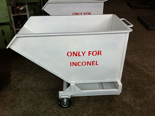 Container sau carucior pentru span acest tip de container poate fi integrat intr-un proces automatizat de productie, containerul basculabil cu roti este ideal pentru deseuri span, deseuri metalice, pulberi metalice, deseuri lemnoase sau ori ce alt tip de deseu provenit din procese de productie industriala.